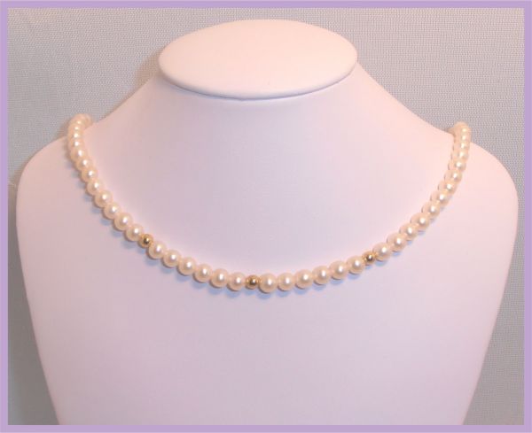 Filo di perle 5-5,5 con tre sfere lucide e chiusura in oro giallo 750‰